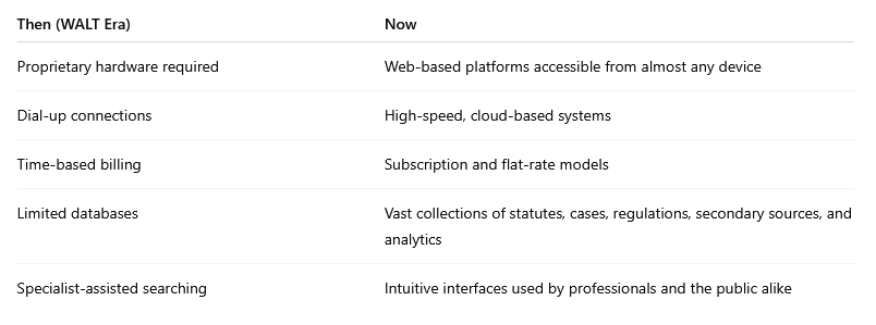 Today’s legal research environment — searchable, interconnected, and widely accessible — rests on the technological foundations laid by systems like WALT.